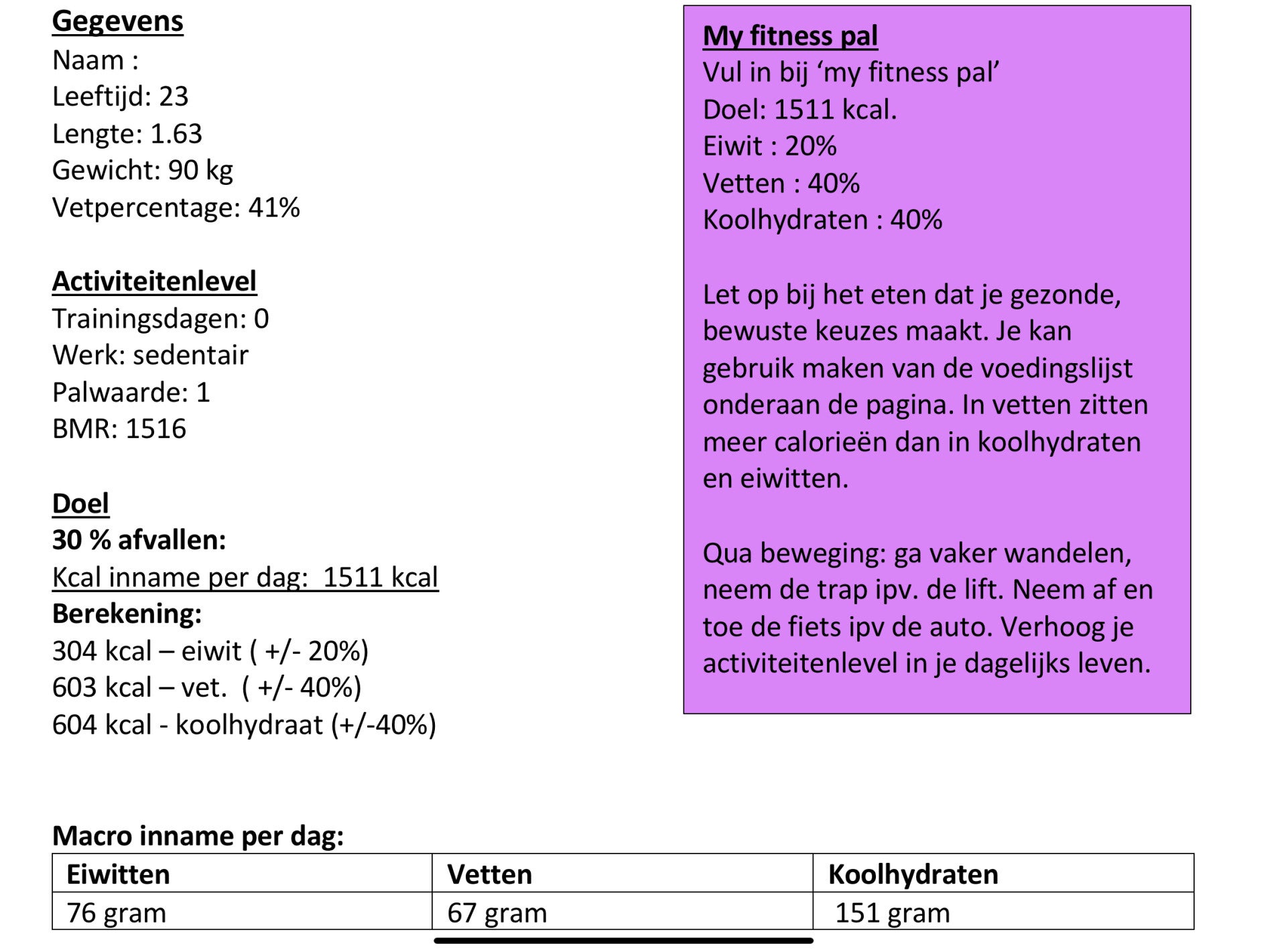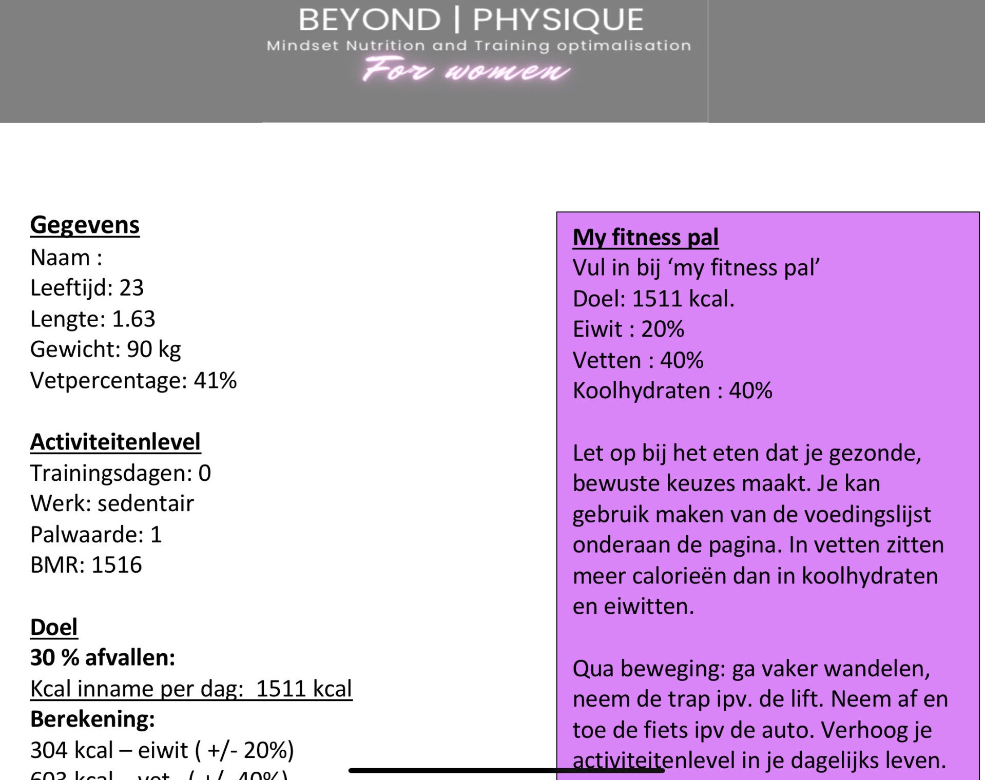 - een op maat gemaakt schema met inzicht in je calorie behoefte gebaseerd op jouw persoonlijke doel.